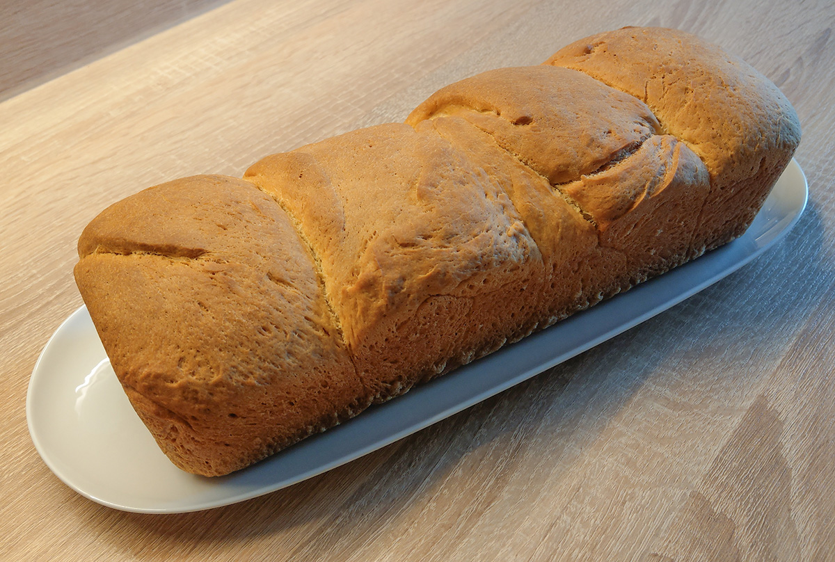Die Milch erwärmen, bis sie lauwarm ist. Die Hefe dazu bröckeln, den Zucker hinzufügen und die Mischung einige Minuten stehen lassen, dann glatt rühren. Zwischenzeitlich die Butter in einem kleinen Topf schmelzen und etwas auskühlen lassen. Die Eier und das Salz in die geschmolzene Butter geben und mit einem Schneebesen glatt rühren. Mehl in eine Rührschüssel geben. Die Butter- und die Hefemischung darüber gießen und alles von Hand oder mit dem Knethaken der Küchenmaschine einige Minuten lang zu einem glatten, geschmeidigen Teig verkneten. Zu einer Kugel formen und die Schüssel mit einem feuchten Geschirrtuch abdecken. Den Teig an einem warmen Ort etwa 1 Stunde gehen lassen, bis er sein Volumen verdoppelt hat. Eine Kastenform mit etwa 25 cm Länge gut mit weicher Butter einpinseln und mit Mehl bestäuben. Den Teig auf einer leicht bemehlten Arbeitsfläche noch mal gut durchkneten und in etwa sechs tennisballgroße Portionen teilen. Jede der Teigportionen zu einer Kugel formen und diese dicht nebeneinander in die Kastenform setzen. Den Teig mit einem sauberen Geschirrtuch abdecken und nochmals etwa 20-30 Minuten gehen lassen.