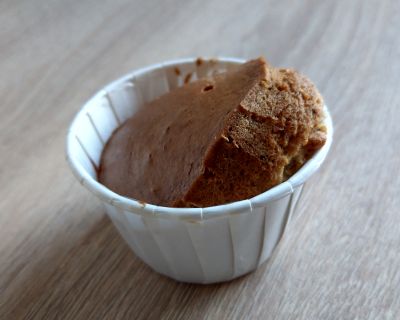 Mehr ein Gag als ein richtiger Kuchen, kann man aber essen. Flüssige Zutaten verrühren, dann trockene Zutaten unterziehen. Maximal drei Minuten in der Mikrowelle bei 800 Watt, Stäbchenprobe. Achtung, Volumen verdoppelt sich, mindestens eine bauchige Tasse mit 300 ml Inhalt benutzen, keine hohe schmale. Zum Stürzen Tasse vorher einfetten. Alternativ auf drei Cupcake Cups verteilen und 20 Minuten bei 180 Grad in der Heißluftfritteuse backen.