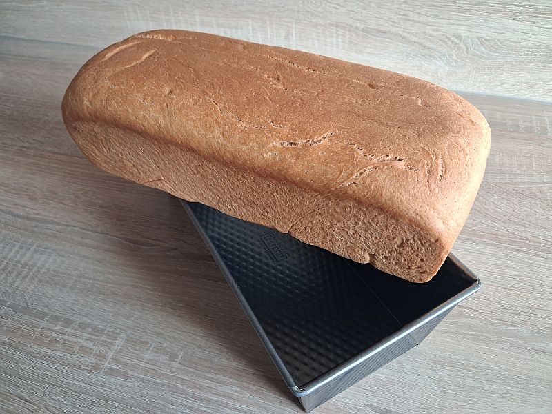 Durch den hohen Milch- und Buttergehalt tendiert der Toast in Richtung Stuten. Eventuell Hälfte der Milch durch Wasser ersetzen und Buttermenge halbieren. Dann 20 ml mehr Wasser.